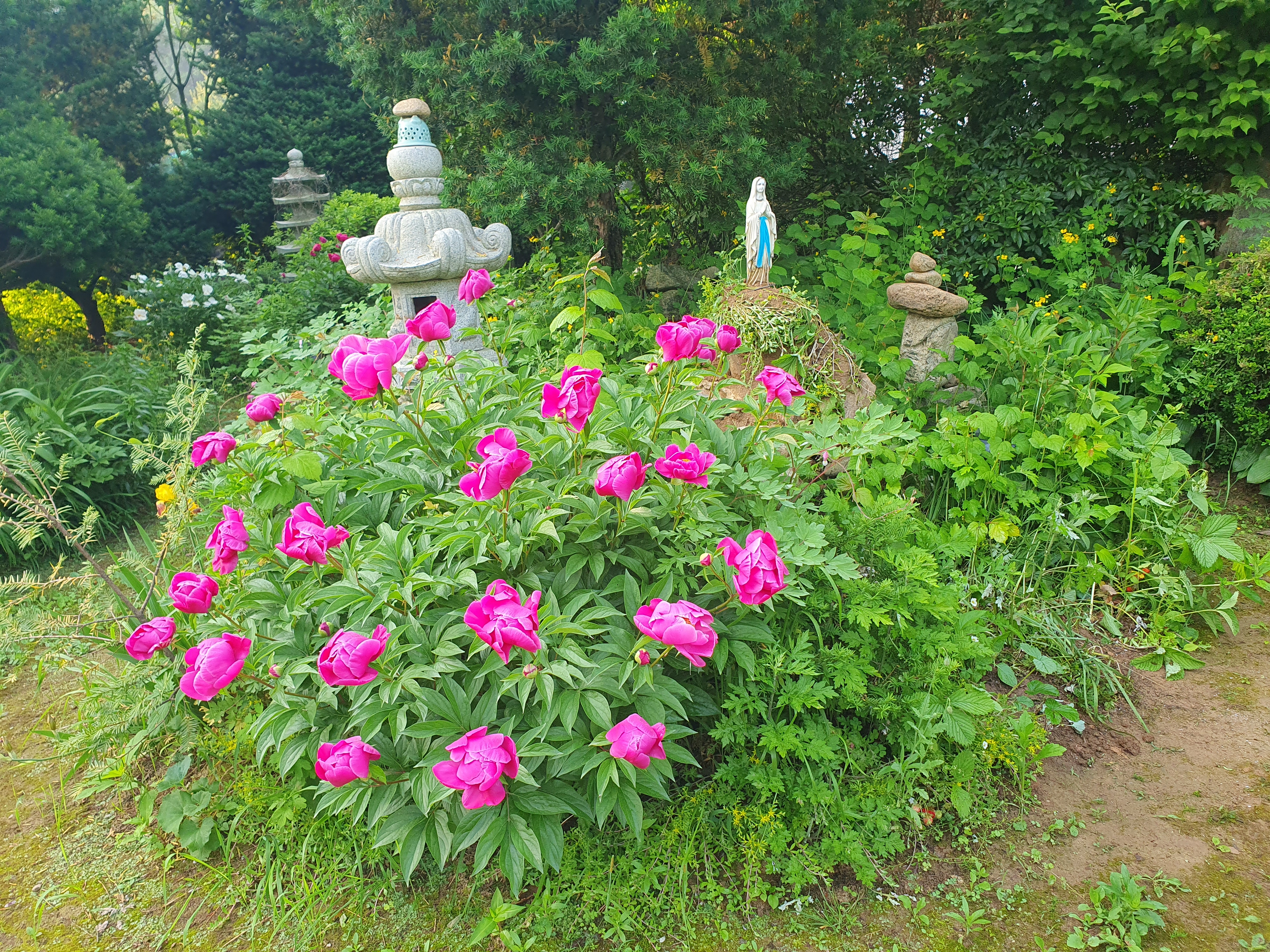 푸른 잔디와 화초가 아니라
